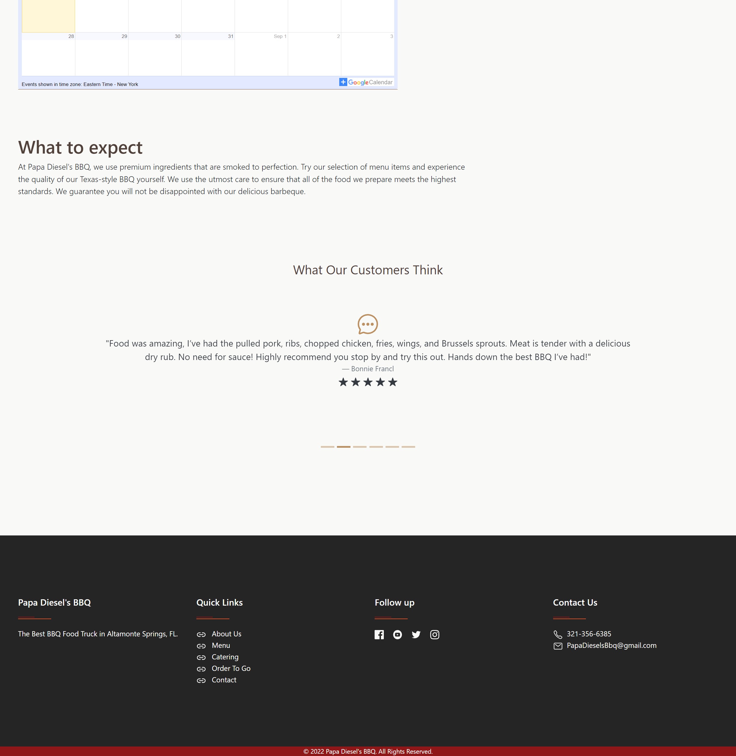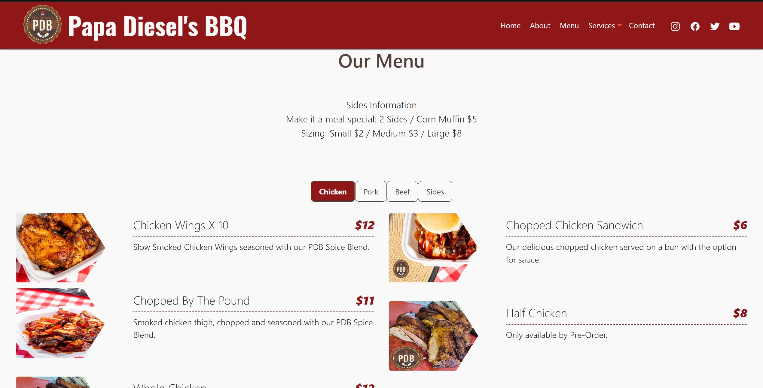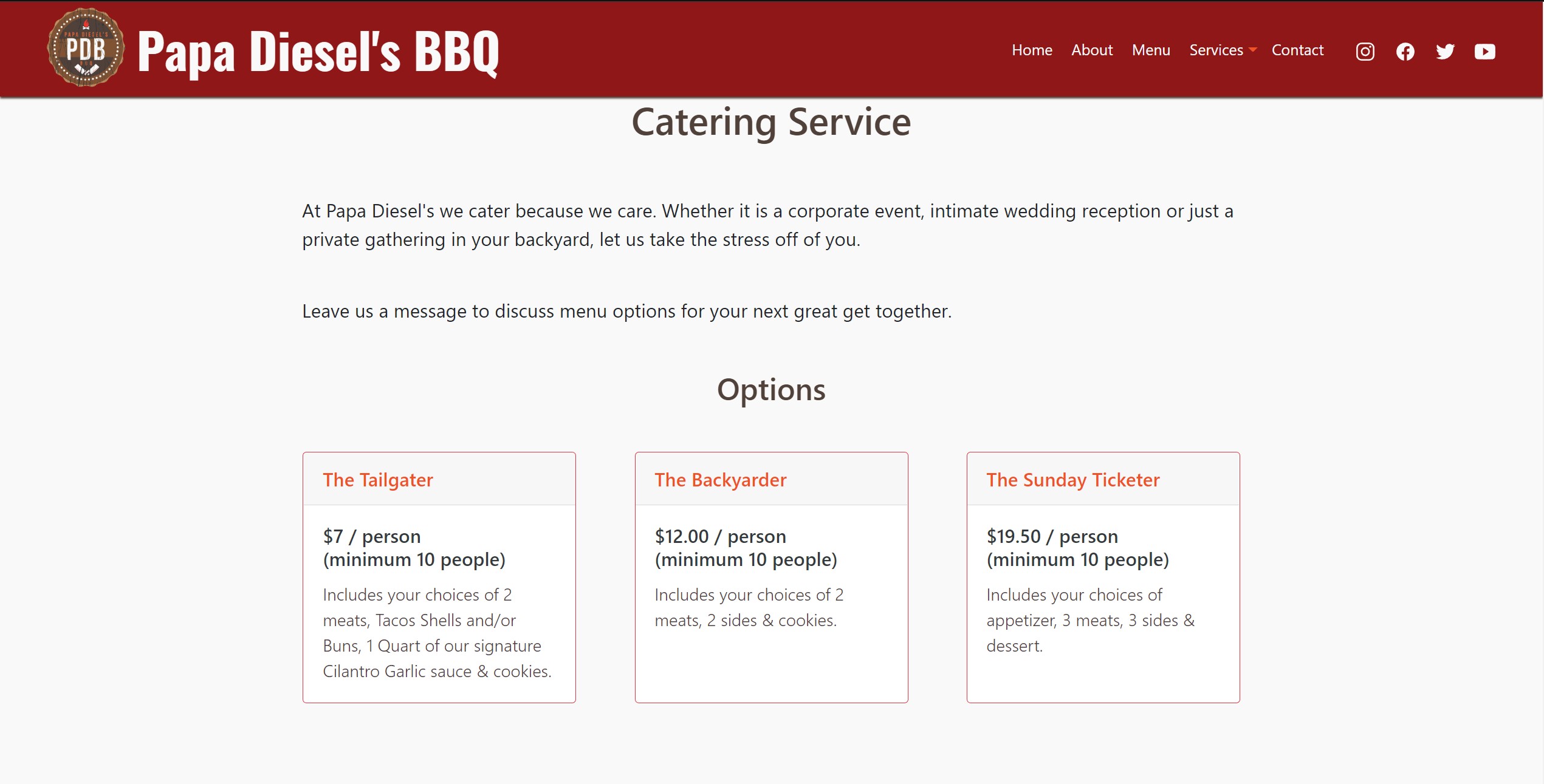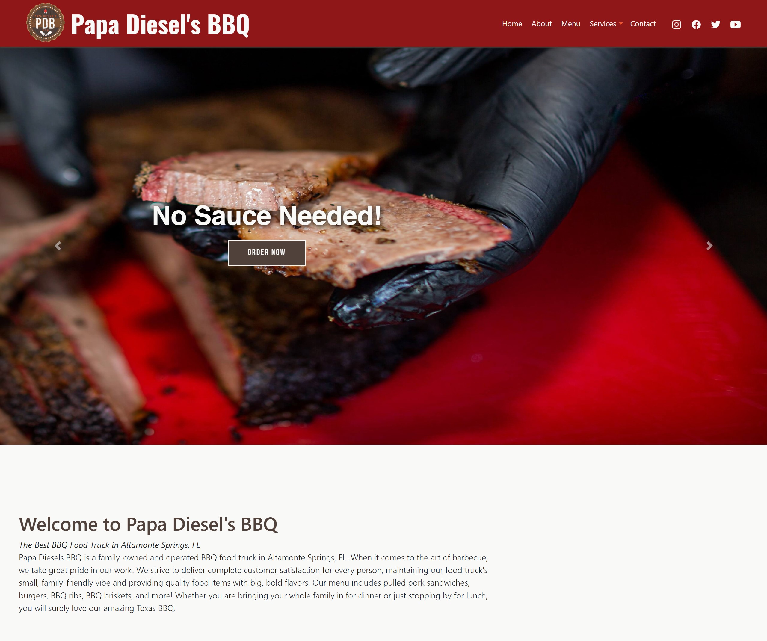 website for Papa Diesel's BBQ. The task was to modernize the client's previous website and implement